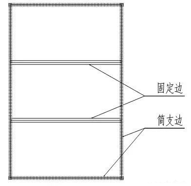 由于边肋可因板面挠曲而转动(扭动),因而边肋支承按简直边考虑。中肋两侧均为铝板,在荷载下基本不发生转动,可认为是固定边。