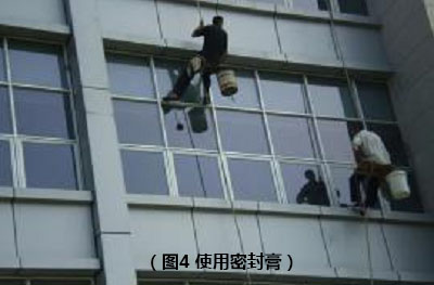 9、使用密封膏前,接缝处的表面应清洁、干燥。玻璃不得与玻璃槽直接接触,并应在玻璃四边垫上不同厚度的垫块,边框上的垫块应用胶粘剂固定。镀膜玻璃应安装在玻璃的最外层,单面镀膜玻璃的镀膜层应朝向室内。(见下图4)